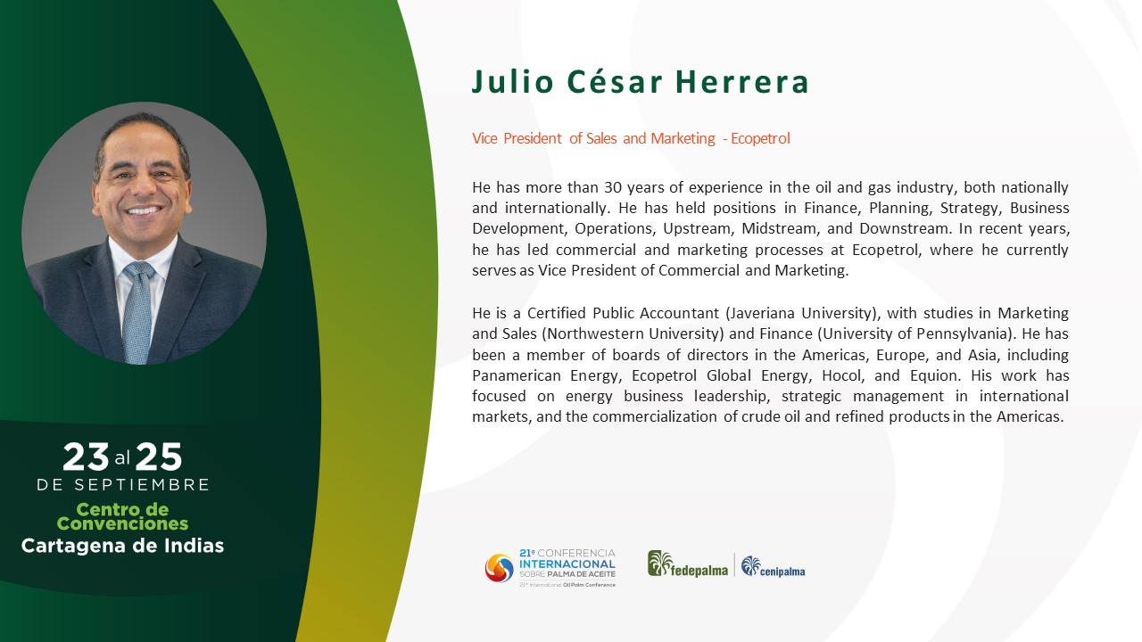 Since August 2021, Nicolás has been Executive President of FEDEPALMA, where he leads the strategy to differentiate Colombian palm oil as a sustainable origin.
